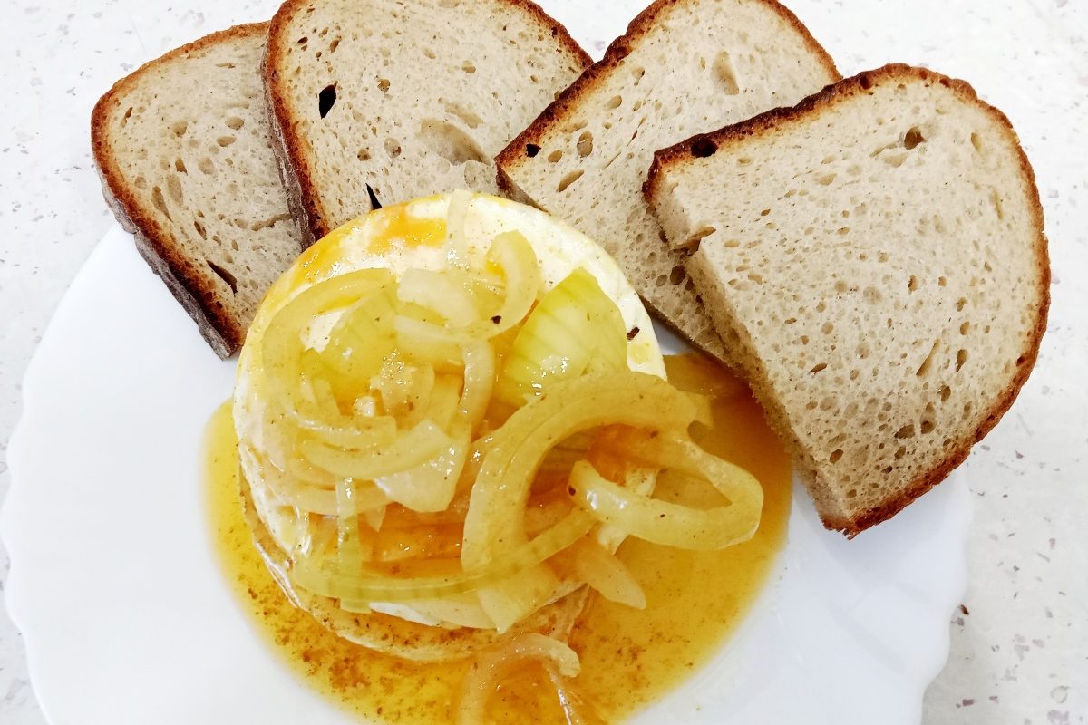 tomat + koření, cibule, anglická slanina, sýr