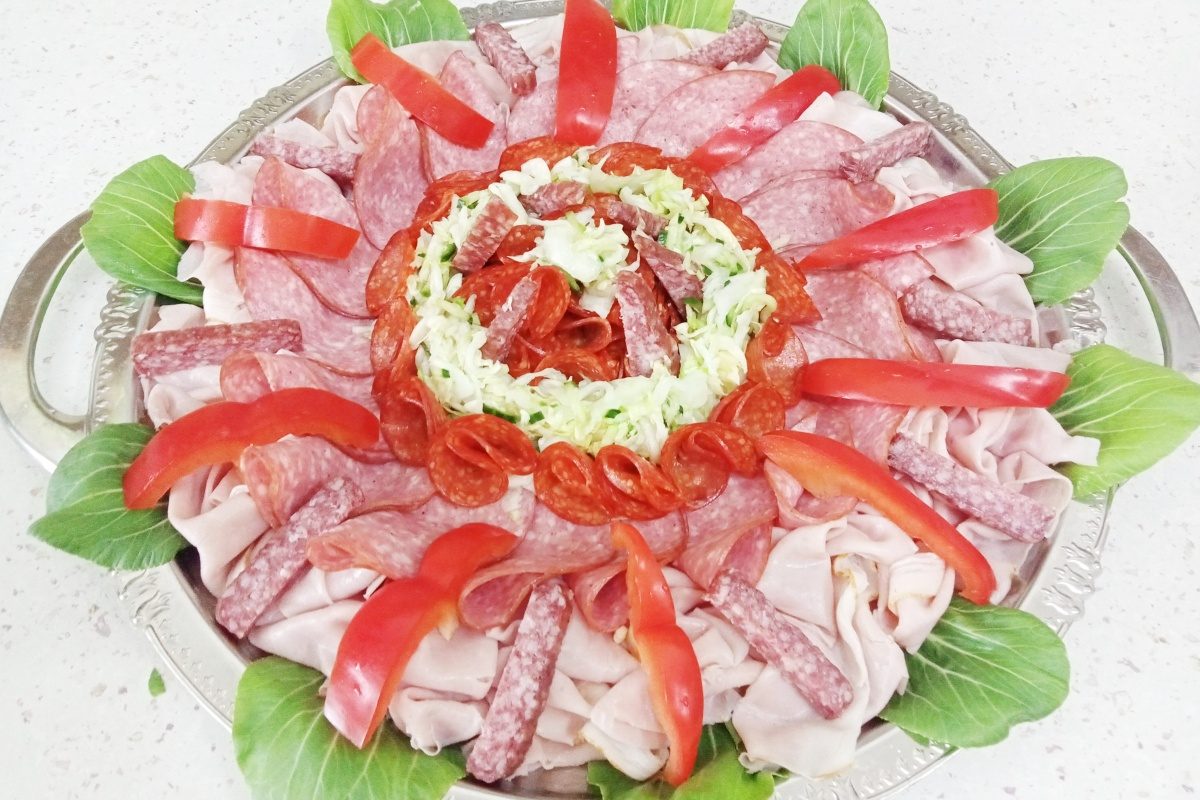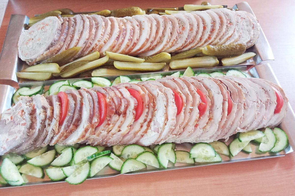 tomat, šunka, kuřecí maso, sýr, česnek, pórek